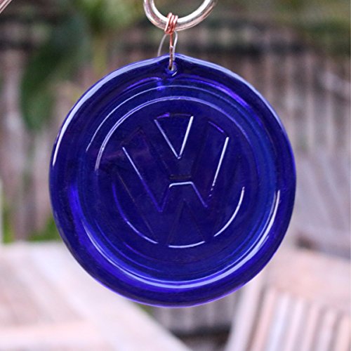 4-Inch VW Lovers Badge Suncatcher In Cobalt Blue from our Fun Collection - A Stunning Window Ornament And Gift From Mission Glass Works - Pressed from Carved Steel Dies Made in the USA