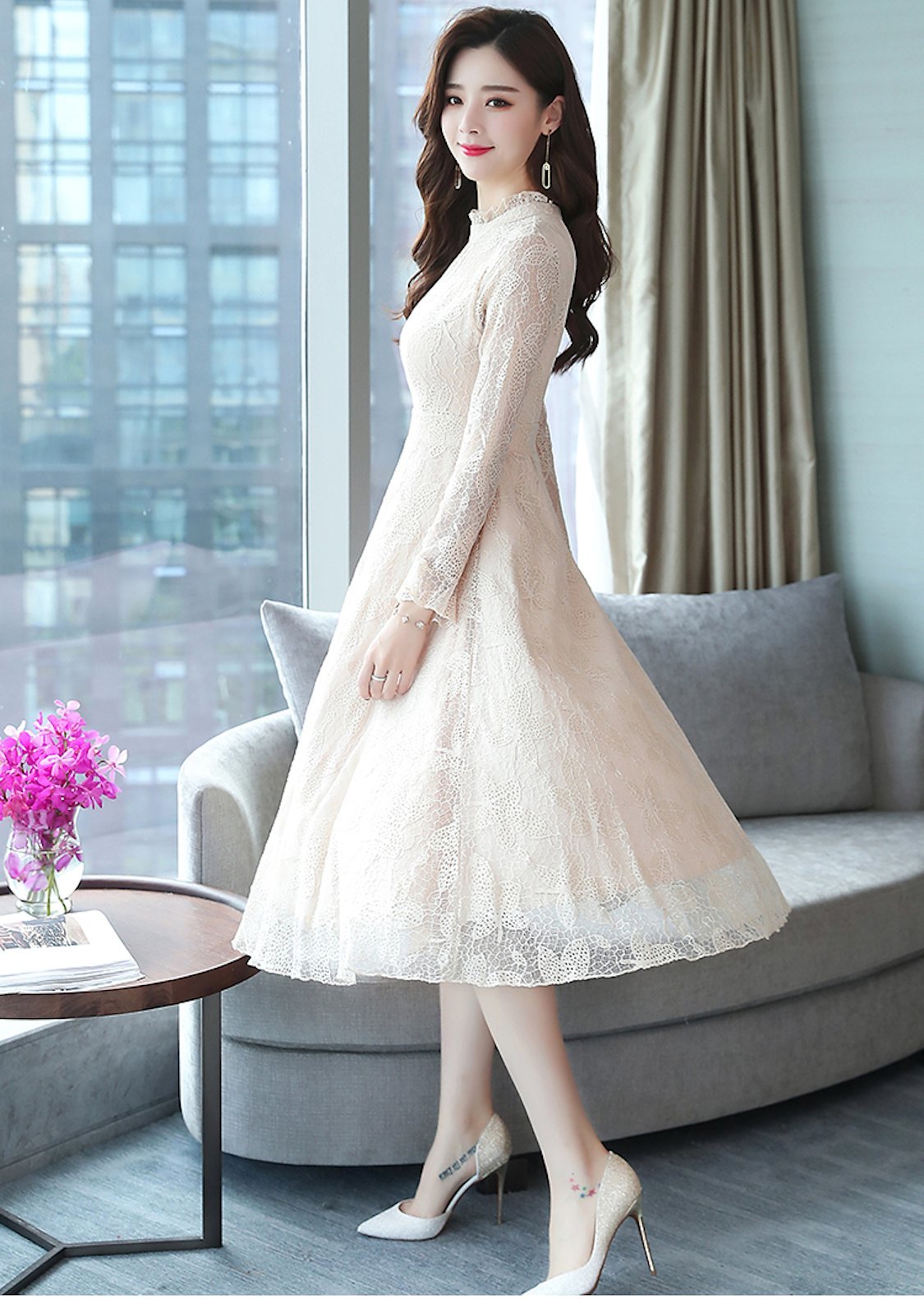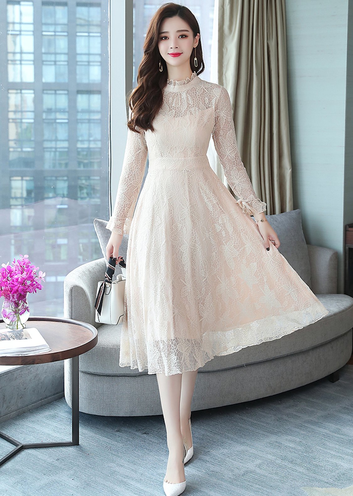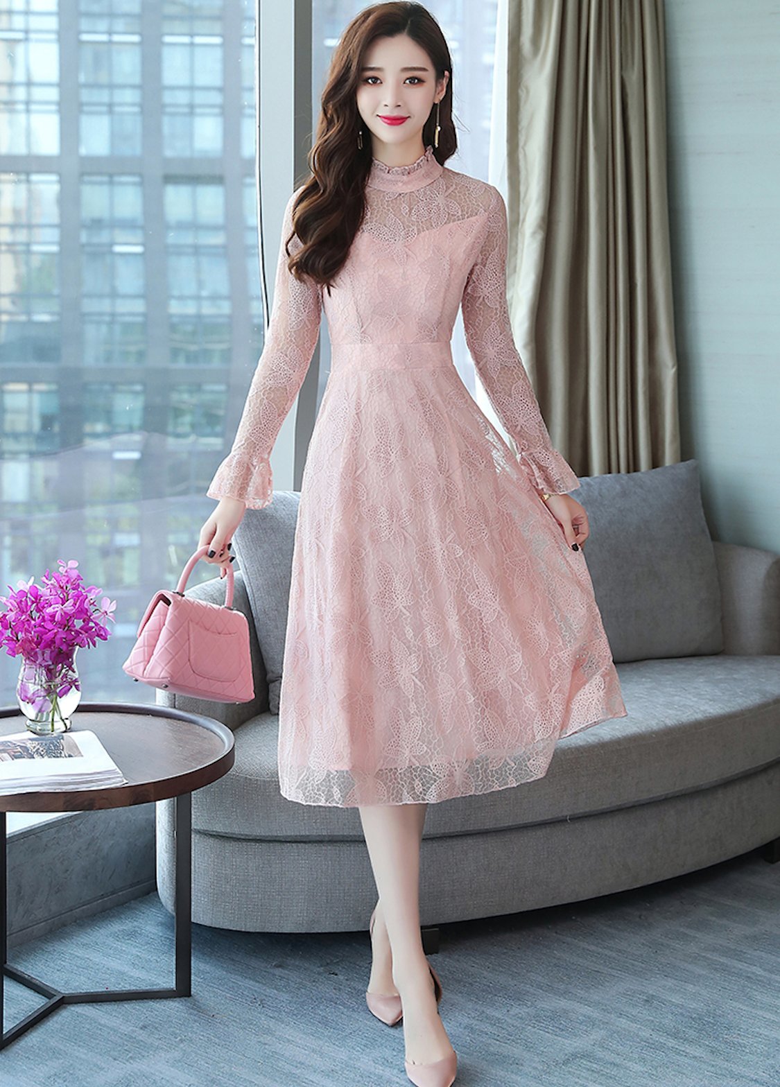 メッシュレース&フリル使いがとってもフェミニンなワンピースドレス。