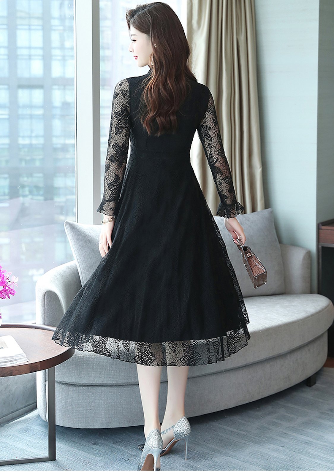 リーフ柄 メッシュ シースルー レース フリル袖 ミモレ丈 ワンピースドレス 透け感 フェミニン 膝下 結婚式 お呼ばれ 華やか パーティー 大人女子