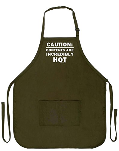 Funny Aprons for Women or Men Caution Contents Incredibly Hot Funny Grilling Apron Two Pocket Man Apron Military Olive Green