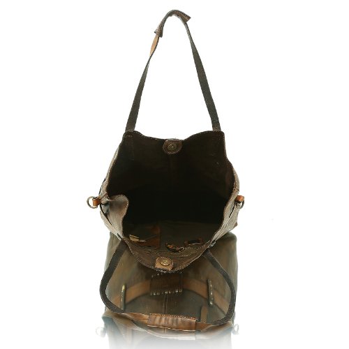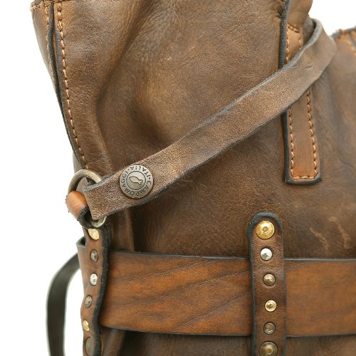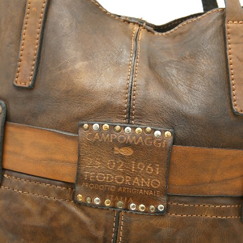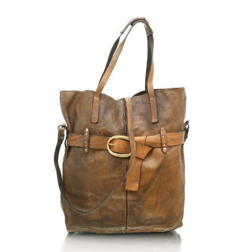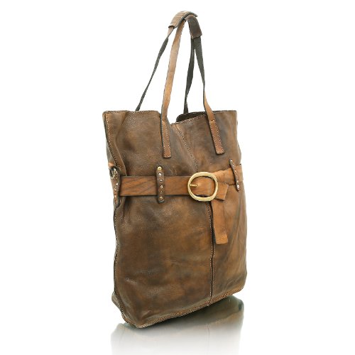 Sie haben eine Leidenschaft für feine Taschen im Vintage-Look? Dann werden Sie dieses entzückende Meistwerk des italienischen Designer-Labels CAMPOMAGGI lieben! Der Shopper verführt mit geschmeidigem Leder, einer formvollendeten Gestalt, angesagten Nieten und Used-Charme. Besonderes Highlight ist ein Lederband, welches sich gürtelartig um die Tasche schmiegt und ihr das gewisse Etwas verleiht. Je nach Belieben lässt sie sich am Tragegriff oder über den Umhängegurt ausführen. Für all die Dinge, die Frau stets bei sich haben möchte ist mit dem geräumigen Innenfach ebenfalls gesorgt. So stehen die verschiedenen Logo-Prägungen zu recht für beste Materialien, liebevolle Handarbeit und modisches Feingefühl. Benissimo! Farbe: verde Obermaterial: Leder Innenmaterial: Textil