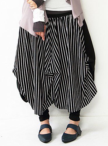 -. Title : (Goldjapan)ゴールドジャパン 大きいサイズ レディース ウエストゴム ストライプ 切り替え スカート フレア ロング jp088