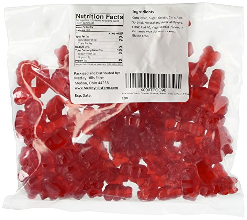 -. Binding : Misc. -. Brand : Albanese Confectionery -. EAN : 0634418511072 -. Feature : Bear Height: 3/4 inch / Quantity: Approximately 145 pieces per pound. / Made In: USA -. IsAdultProduct : 0 -. LegalDisclaimer : Color may vary from photographs. Manufacturing process often differs slightly with every batch. NO REFUNDS for COLOR variance. -. ProductGroup : Grocery -. ProductTypeName : GROCERY -. Size : 16 Ounces -. Title : Red Wild Cherry Gummi Gummy Bears Candy 1 Pound Bag -. UPC : 634418511072