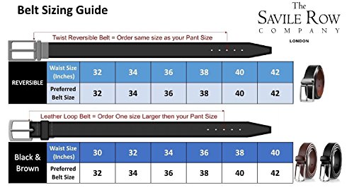 -. Feature : BE VERSATILE - REVERSIBLE (BLACK/BROWN): This Savile Row men's belt features a high fashion design on both sides, you can finish off any look in black and brown with just a twist of the buckle (see attached photo), so you got basically 2 belts in a practical 1 belt. / HIGHEST STANDARDS OF EXCELLENCE: This Premium Savile Row men's reversible leather belt construction offers highest quality and maximum durability, belt is made with most expensive leather for long lasting, All Savile Row mens belts pass rigorous quality inspections ensuring only perfect belts reach the market. / THE GLOBAL PHENOMENON NOW AVAILABLE TO YOU: The men's belts from the well-known Savile Row Company from London is hand cut & crafted from the finest quality imported 100% top grain leathers, hand crafted in NY ! / INNOVATIVE DESIGN MEETS UNMATCHED FUNCTION: the secret of having beautiful elegant & stylish looking belts can only be found in this Savile Row Reversible Leather Belt, they are durable and everlasting, with their beautiful finish compliments to its stylish Buckle, the mens fashion belt is elegantly designed with class to be used at any place where you need to look your best, you will always give a delusions of grandeur impression. / ULTRA PERFECT FIT & FUNCTION DETAILS: 5 punched holes for best fitting, 2 mm thick, 1.3 inches wide, belts comes in multiple sizes, please see the attached sizing chart for specific details. - ORDER WITH GRACE - If you are looking for the best leather belt, just add the Savile Row belt to your cart, its 100% satisfaction guaranteed, with a 60 days free exchange and return policy as long it's still in brand new condition.
