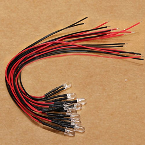 OriGlam 10pcs White LED Light Pre-Wired 5mm Round Top Bulb Lamp 12V 7.8in Prewired For DIY Car Boat Parties