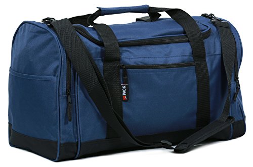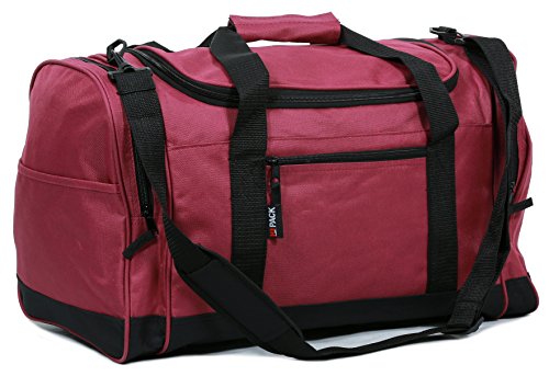 -. Feature : 600d Polyester / Multiple pockets for more organization / Carrying strap and double handles. / Dimensions 22"l x 12h x 11"w / Spacious duffel bag with zippered clamshell opening and zippered side/front compartments.