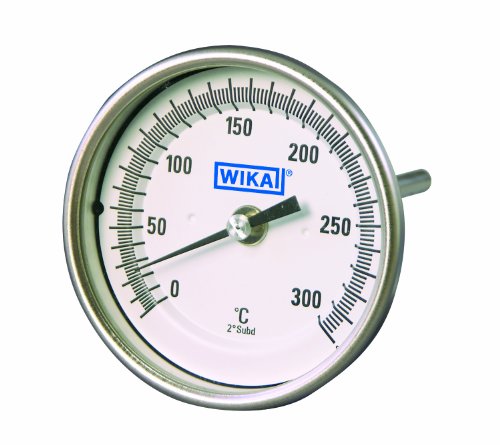 WIKA TI.33 Stainless Steel 304 Industrial Grade Non Resettable Bi-Metal Thermometer, 3" Dial, 0/250 Degrees F, 9" Stem, 1/2" NPT Connection, Back Mount