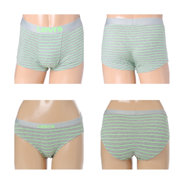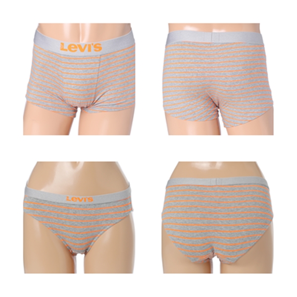 멜란지 그레이와 화이트, 형광 컬러 스트라이프가 매치된 베이직한 디자인이며