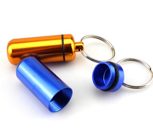 -. Title : Portable Aluminum Pill Box Keyring Case Holder Bottle Stash Container