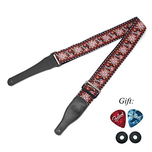 -. Feature : Made of High-grade material jacquard weave embroidery braid + cotton material and Genuine leather ends(Firmly tied your Guitar).The length can be adjusted easily, you can adjust different length according to your need. / Well Constructed - Double Layers Thick, The strap material is soft to the touch and super sturdy that can hold up strong,your guitar is safe with it! / Fit Most - Perfect Size with Width: 2"(5cm), comfortable to wear; Fully adjustable length (approx.) from 40" to 64.5"(101cm-164cm) (including the leather ends), The most comfortable cotton material for both adult and children. / 100% Genuine Leather Ends, your guitar is safe with it ! - Thanks to its top grade leather, the guitar strap leather holes are built to avoid deformation/ open or release and keep it holds your guitar well and safely. / Compatible with all size Guitar and Acoustic Guitar(Classical and Folk guitars), Electric or Bass guitar, Resonators, Banjos & Mandolins .