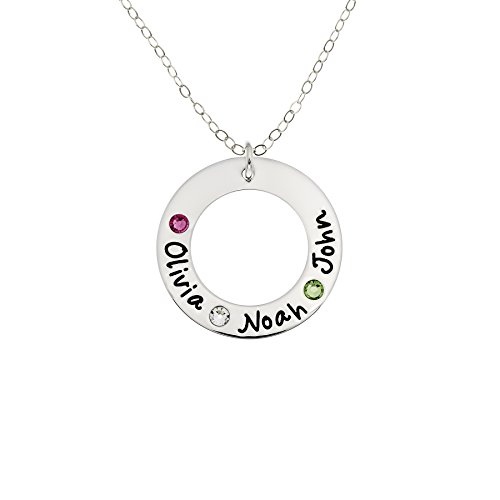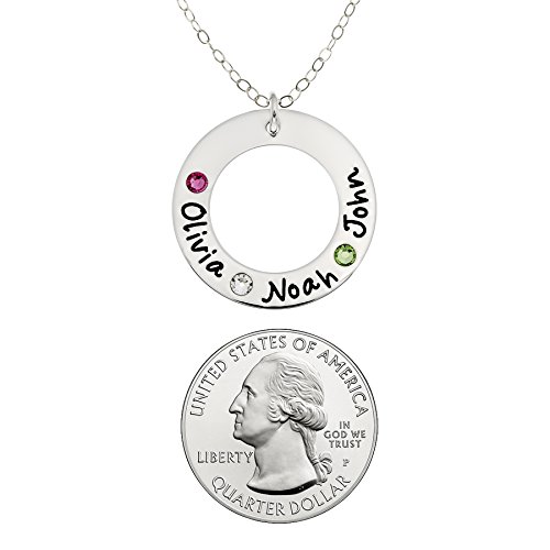 -. Title : Sterling Silver Personalized Washer Necklace with 3 Swarovski Birthstones with a choice of Sterling Silver Chain. Perfect Gift for Her