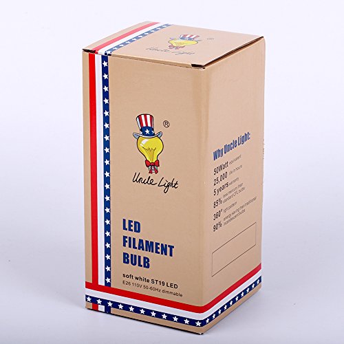 LED Edison Bulb Dimmable,E26 base 4W 2700K ST19 Vintage LED Globe Bulb,UNCLELIGHT, 60W Equivalent LED Filament Bulb, UL Listed 110VAC(6 Pack)