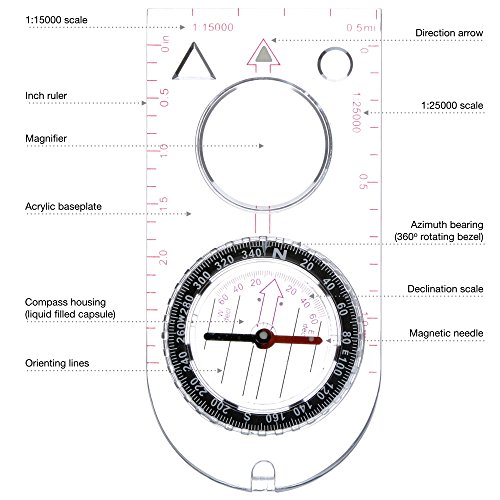 Studio : Reliable Outdoor Gear Publisher : Reliable Outdoor Gear Binding : Misc. Product Description If you are looking for great basic compass that is accurate, lightweight and small, then this is the right thing for you. A standard compass for outdoor orienting that makes it easy to read the map and plan your trip. You will certainly be on the right track with this tool thanks to the liquid-filled capsule (bubble free) which makes the needle swing fast and freely, and accurately point you north. The swivel bezel it's easy to rotate and makes it simple to set the bearings with 2o graduations. It is durable and will last you a lifetime as the clear base plate it's made of strong acrylic (plastic). You will be able to make precise route planning with the multiple measurement scales and the holes for drawing control points on the map. Also if you need, you can keep it handy around your neck, using the lanyard (included). This field compass is the classic instrument for the advanced orienteer, as well as novices to map-and-compass work - "a scouting compass perfect for your scout troop". It's the perfect size for ultralight backpackers and a must for everyone's outdoor pack. See for yourself why it has been high rated by the top reviewers. Compare it with similar products to see the difference. After that, Grab yours now and get yourself a Reliable Outdoor Gear! Even better! It comes in gift-wrap if you need to buy one as a present. Choose your favourite wrap at checkout. 0 |