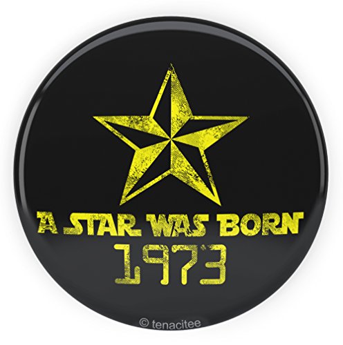 Binding : Apparel Product Description A Star Was Born 1973 2.25" Button by Tenacitee. Express yourself! Buttons are the perfect way to let the world know how you feel. Our buttons are designed, printed, and handmade at Tenacitee's studio in Oklahoma. Proudly made here in the USA! This 2.25" button has a metal shell with pinback and mylar cover to protect from scratches. Perfect to decorate your shirt, jacket, bag, or put anywhere else you want! It's a great gift or giveaway for parties. 0
