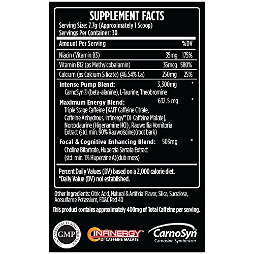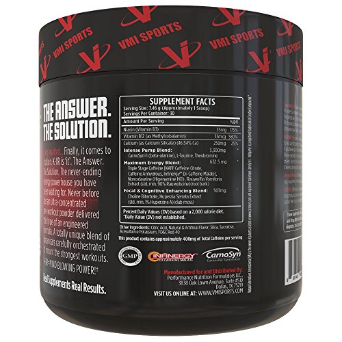 Studio : VMI Sports Publisher : VMI Sports Binding : Health and Beauty Product Description KXR IS THE ANSWER. THE PRE-WORKOUT SOLUTION YOU HAVE BEEN LOOKING FOR. ALL THE ENERGY, ALL THE POWER, WITHOUT THE CRASH. NO JITTERS, NO HEADACHES, POWERED BY: CARNOSYN® Beta Alanine: An amino acid that supports muscular endurance. Beta Alanine produces a tingly sensation throughout the body that lets you know it's working. INFINERGYTM di-caffeine malate: a time released version of Caffeine that allows for longer energy release and superior workouts. A unique blend of botanical ingredients that will help provide a maximum intensity pre-workout formula to have you setting new records in the gym! With improved focal enhancement, sustained energy release and increased pumps endurance, KXR will make sure you never look to another pre-workout again! 0
