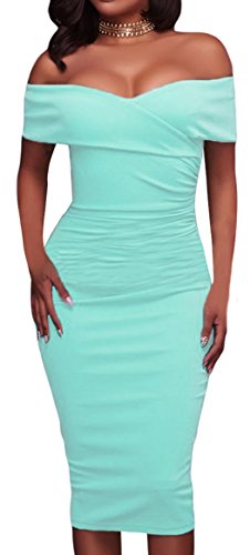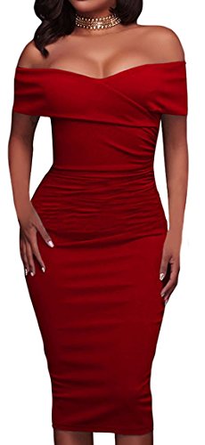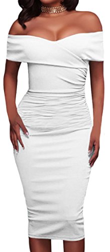 Unique Ruched Design, Trendy off Shoulder, Knee Length, Bodycon Fitted Style