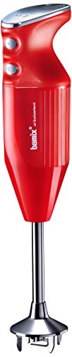 Bamix est un produit fabriqué en Suisse depuis 1954. C'est à Mettlen, au coeur de la Suisse, que Bamix inventa le premier mixeur plongeant. C'est aujourd'hui le seul mixeur plongeant intégralement fabriqué en Europe. L'excellente qualité de finition fait du Bamix un partenaire extrêmement fiable pendant de longues années, c'est la raison pour laquelle de nombreux chefs travaillent avec. Toutes les pièces en contact avec les aliments sont de qualité supérieure, compatibles aux denrées alimentaires, inoxydables et ne prennent ni goût, ni odeur. Mixeur plongeant - Bamix M140 : Mono rouge Fourni avec 4 disques (étoile, hachoir, fouet, mélangeur) et un gobelet 600 ml Bamix a inventé le concept du mixeur plongeant. Aujourd'hui encore, nul autre mixeur ne permet de réaliser tout ce que le Bamix peut faire : potages, blancs en neige, mayonnaise, smoothies, milk shakes, glaces, sorbets, guacamole, purées, compotes, tartares... Le tout, en silence, et sans effort. Puissance : 140W. Dimensions : 9.5 x 14.5 x 36 cm. Diamètre : Ø 6 cm. Moteur et pièce garantis à vie (hors accessoires). La main d'oeuvre est garantie 2 ans à compter de la date d'achat. Eco-participation incluse.