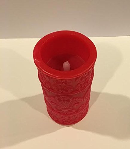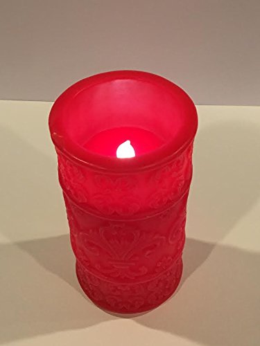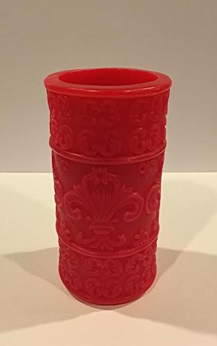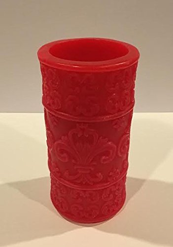 Flameless Candle, Stunning LED Pillar Candle, Carved Fleur-de-lis Cut Design, Red Candle Real Wax Candle, Home Decor, Ideal Candle Gift, 5h Built In Timer, Electric Candle - Christmas Candle