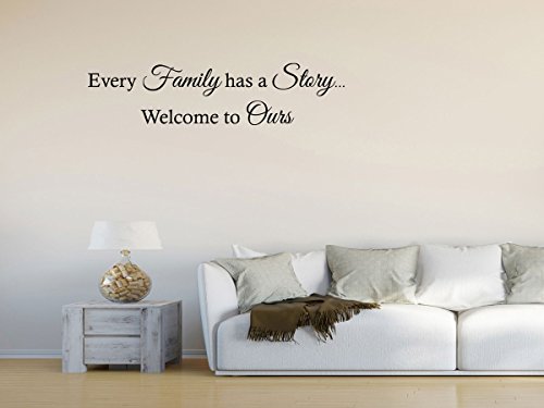 -. Binding : Kitchen -. Brand : Quote Designs -. Color : Black -. EAN : 0793002680843 -. Feature : ★ MADE IN THE USA! From 7 years indoor/outdoors self-adhesive vinyl. / ★ MADE WITH QUALITY MATERIAL: Decal is made with Oracal, a premium quality vinyl material. / ★ EASY TO APPLY: Product can be applied to any hard and smooth surface. Once the decal is on the wall the only thing left are the letters. ★ EASY TO REMOVE: No residue is left on the wall (note: decal is removable but not reusable). / ★ DECAL SIZE: 28"Wide x 13"High inches (71 cm Wide x 33 cm High). ★ Decal Color: Black. / ★ EASY TO HANDLE: The whole quote comes on a single decal which peel and sticks to the wall. -. IsAutographed : 0 -. Model : 6111101 -. MPN : 6111101 -. PartNumber : 6111101 -. ProductGroup : Home -. ProductTypeName : HOME -. Size : 28"W x 13"H -. Title : Wall Decal Quote Every Family Has a Story Welcome to Ours Vinyl Wall Decal Sticker Letters Quote -. UPC : 793002680843