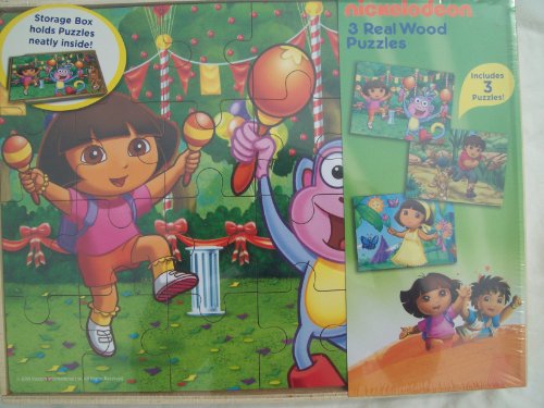 -. Title : Nickelodeon 3 Real Wood Puzzles - Dora, Boots and Diego - 24 Pieces Each