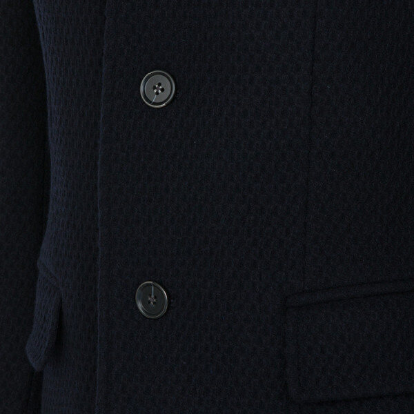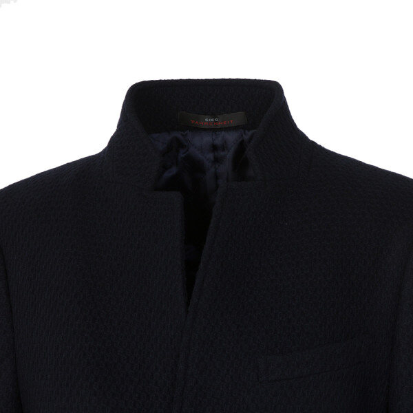 SIEG °FAHRENHEIT니트 조직감 같은 소재로 따뜻한 느낌을 주는 외관이 포인트인 심플한 형태의 변형 스탠드 카라 코트.