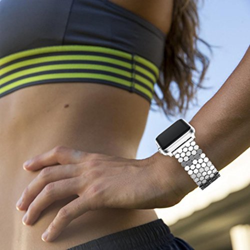 HP95(TM) Replacement Stainless Steel Bead Bands,For Apple Watch Series 3 38MM Metal Watch Band (Silver)
