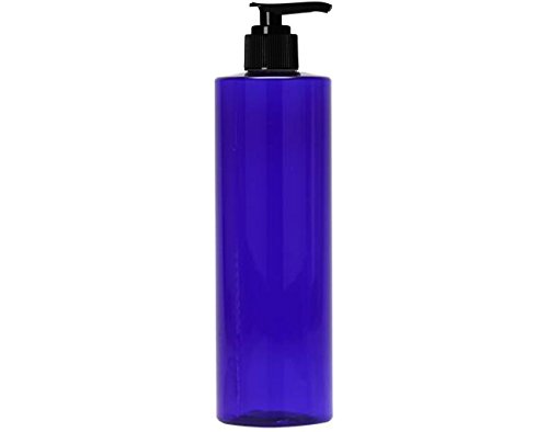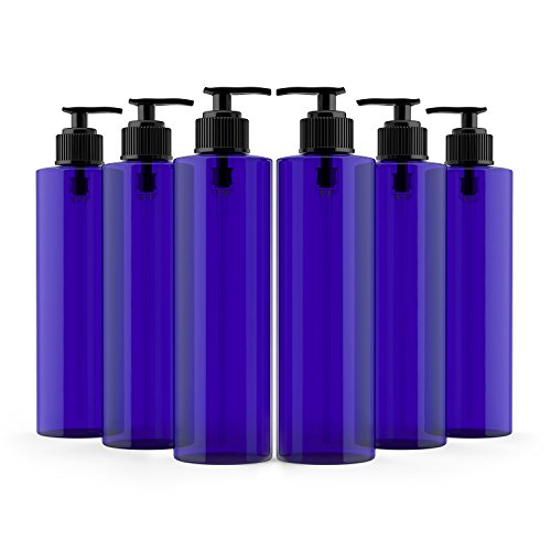Newday Bottles, 8 Oz Cobalt Blue Empty Plastic Bottles Cylinder PET BPA-Free with Black Lotion Pumps, Pack of 6