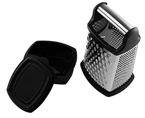 - STORAGE CONTAINER INCLUDED - No need to waste any extra food or worry about cleaning up after you finish grating. The grater is designed to sit atop the storage container making sure all your food falls safely inside the container and not everywhere else. On top of that, it works as a space saver as it tucks right into the middle of the grater