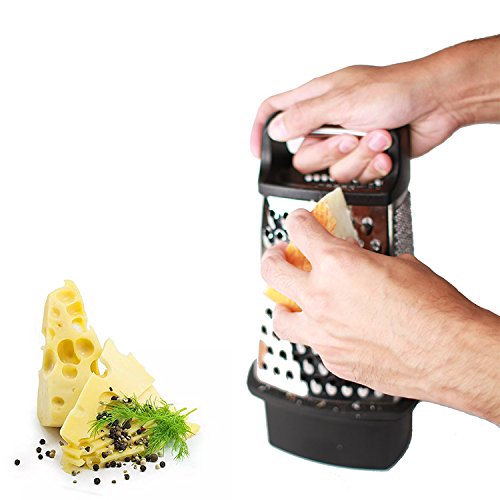 - MULTIPLE CUTTING SURFACES - This durable four sided box grater has three sharp grating surfaces and one razor-sharp slicer that will easily grate any block of cheese and slice through the toughest fruit, vegetable, or nut, giving you multiple options for achieving the perfect cut