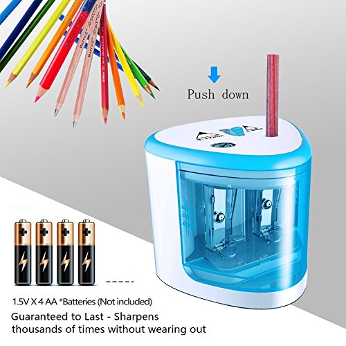 Battery powered: 4*AA battery operated, powerful and sharpen fast, make a sharp pencil in 4 seconds .(Battery Not INCLUDED)