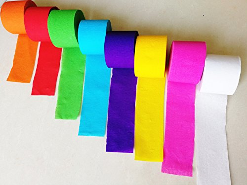 - Package contains 8 rolls party streamer in assorted color: White, Blue, Green, Yellow, Red, Rose Red, Purple, Orange. NOTE: colors random delivery.