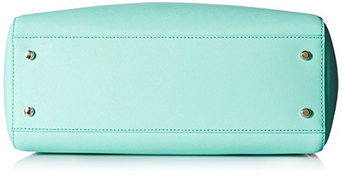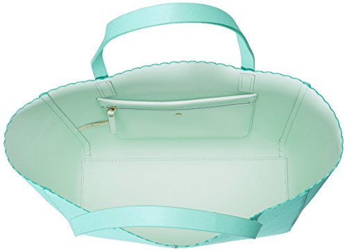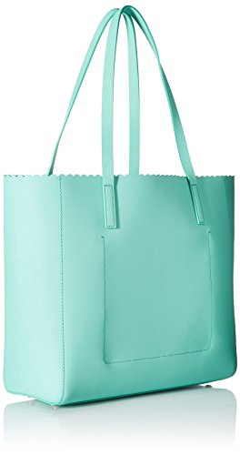 Tote bag in crosshatch leather featuring scalloped topline, dual shoulder handles, and luggage tag