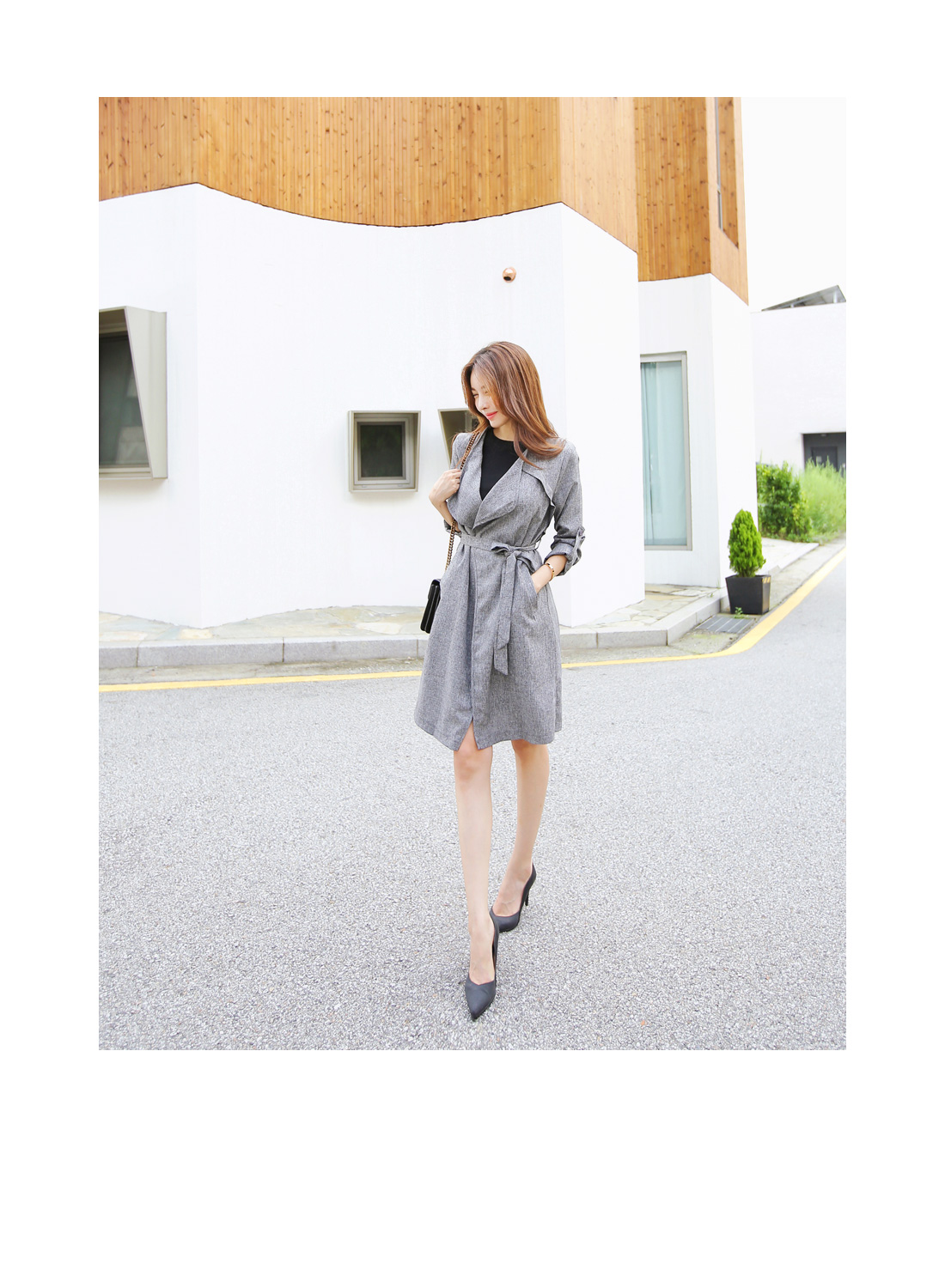 허리부분 라인을 잡을수 있게 벨트로 연결되어 멋스러우며,