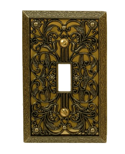Amerelle 65TAB Filigree Cast Metal Toggle Wallplate, Antique Brass