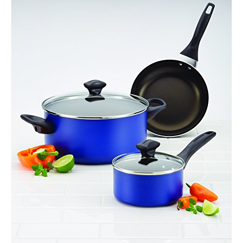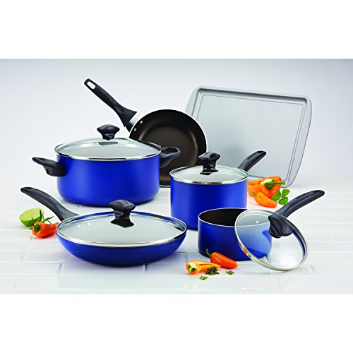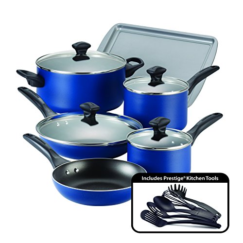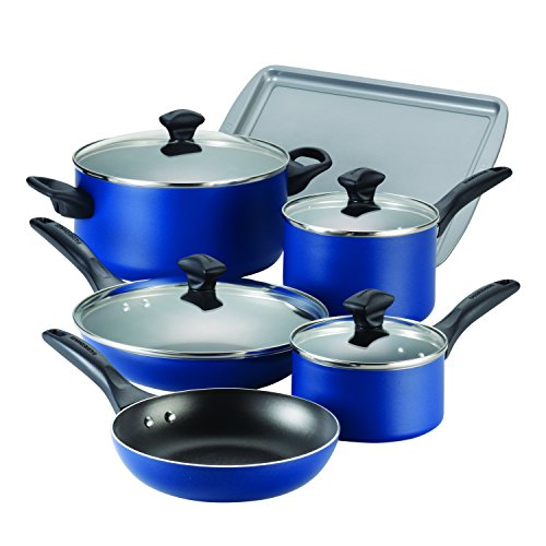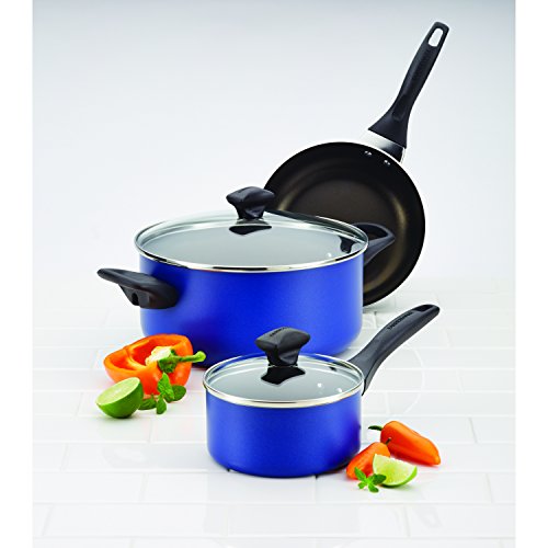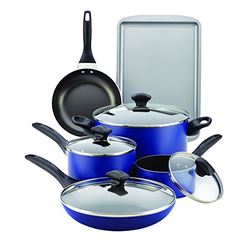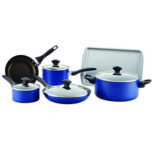 Farberware Dishwasher Safe Nonstick Aluminum 15-Piece Cookware Set, Blue