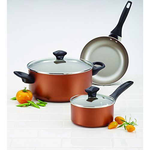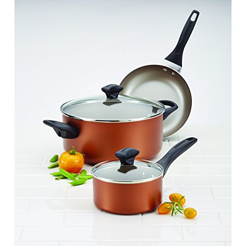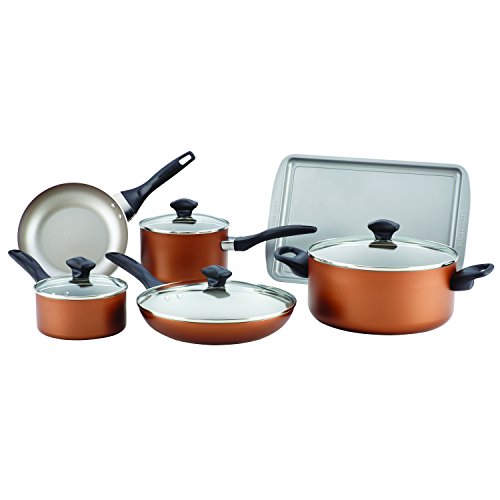 Farberware Dishwasher Safe Nonstick Aluminum 15-Piece Cookware Set, Copper