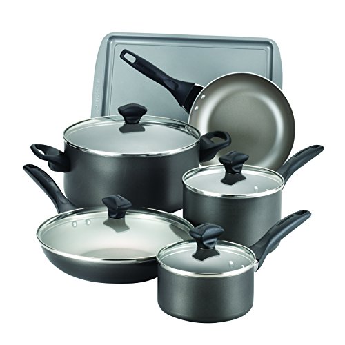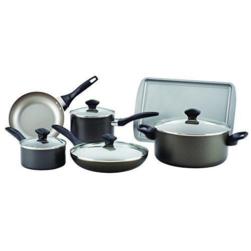 Farberware Dishwasher Safe Nonstick 15-Piece Cookware Set, Black