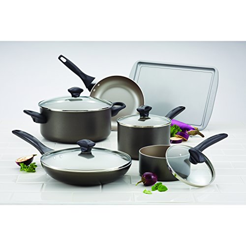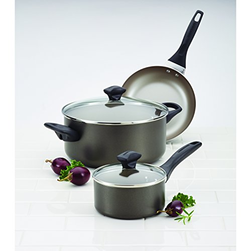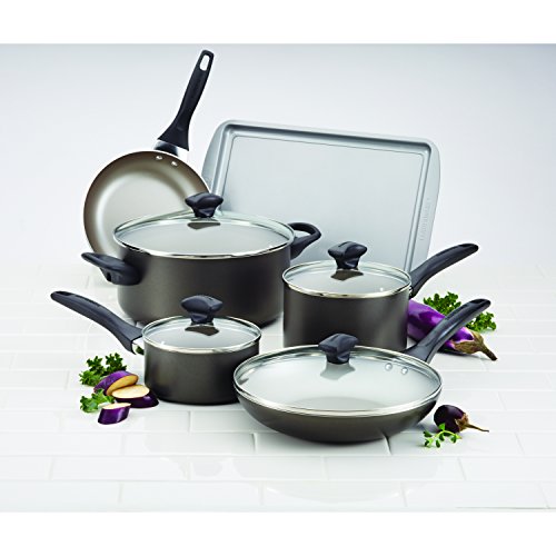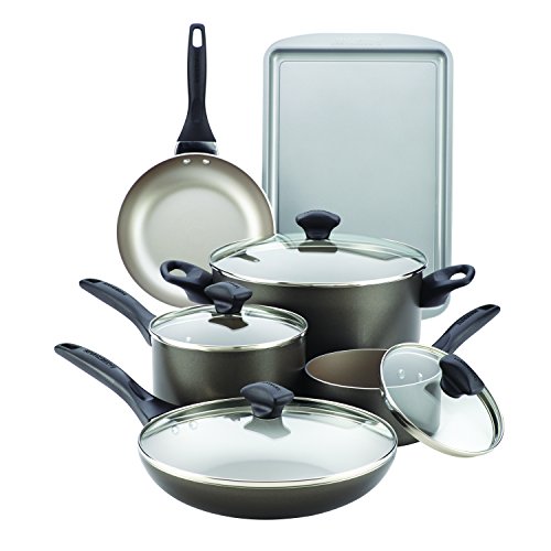 Farberware Dishwasher Safe Nonstick Aluminum 15-Piece Cookware Set, Pewter