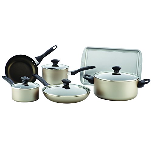 Farberware Dishwasher Safe Nonstick 15-Piece Cookware Set, Champagne