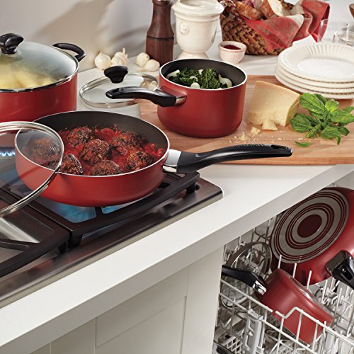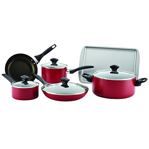 Farberware Dishwasher Safe Nonstick 15-Piece Cookware Set, Red
