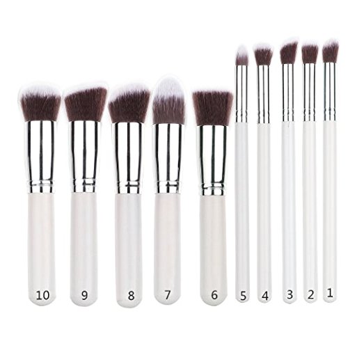 -. Title : ABOEL - Makeup Brush Set Cosmetics Foundation Blending Blush Eyeliner Face Powder Brush Makeup Brush Kit (10pcs, Silver White)