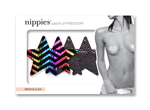 - Feature : Nippies are the first high-quality, high style nipple cover when you need a little coverage but can't (or don't want to!) wear a bra / Self-adhesive (no glueing - just peel and stick!) for easy application with an optional nipple protection pad for painless removal / Wrinkle-free lingerie fabrics stretch and smooth for shape and lift. / Waterproof and sweatproof adhesive makes Nippies perfect for all occasions: the office, dancing, dates, under a bikini top at the pool or beach, special events, or weddings / 1 pack has 2 pairs (1 pr blk w/ rainbow foil & 1 pr hawaiian mint), 2 mini patch tests, and 4 nipple pads