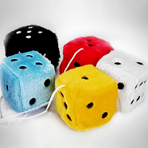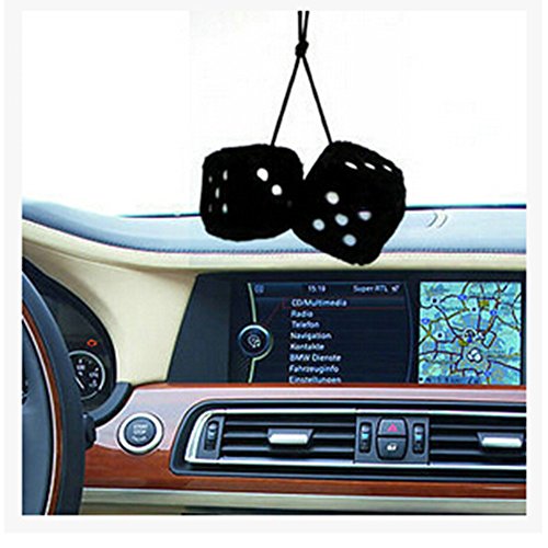 Giveme5 3 inch Pair of Retro Square Mirror Hanging Couple Fuzzy Plush Dice with Dots For Car Interior Ornament Decoration (Red)