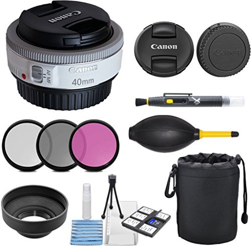 Celltime Inc. Canon EF 40mm f / 2.8STM렌즈고정(화이트) 3개 들이 필터 키트(UV,CPL,FLD)+디럭스 파우치+후드+클리닝 키트국제적바
