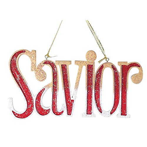 Savior Crimson, Ivory, and Gold Glitter 5.25 x 2.75 Resin Stone Christmas Ornament