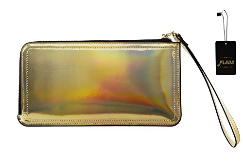 -. Title : Flada Hologram Laser Zipper Around Pu Leather Wallet Clutch Purse Mobile Phone Bag