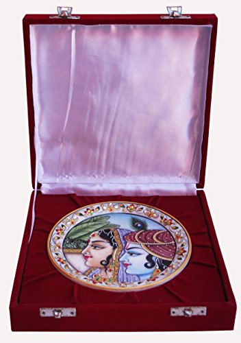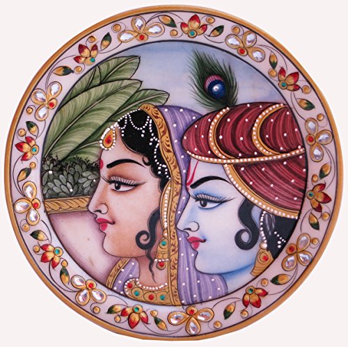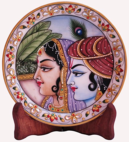 Lord Radha Krishna Painting on Marble Plate, Elegant & Decorative Home Décor & Religious,