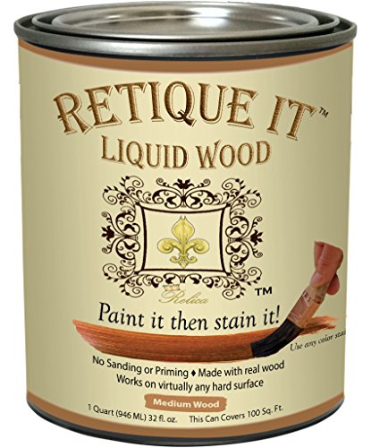 Retique It Liquid Wood - Medium Wood Quart - Paint it then stain it - Stainable Wood Fiber Paint - Put a fresh coat of wood on it (32oz Medium Wood)