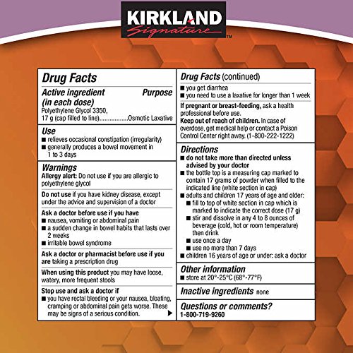 -. Feature : Compare to MiraLAX® Active Ingredient / Polyethylene Glycol 3,350 / 2 Bottles, 50 Doses Each 12:37:21 AM
