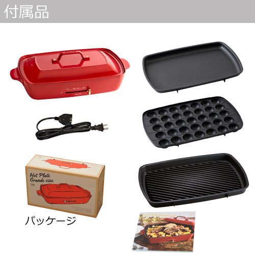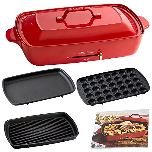 원본상품명: BRUNO ホットプレ?ト グランデサイズ + グランデ用グリルプレ?ト +グランデ用レシピブック 3点セット (レッド)